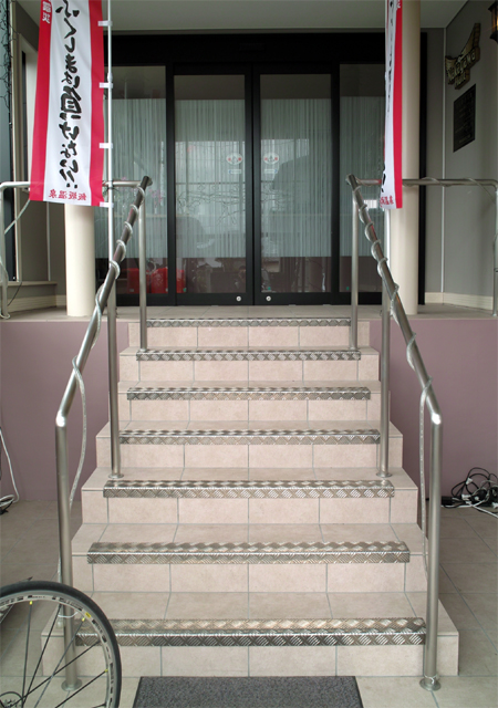 ※写真は弊社の玄関先の階段に設置した、アルミで製作した滑り止めです。